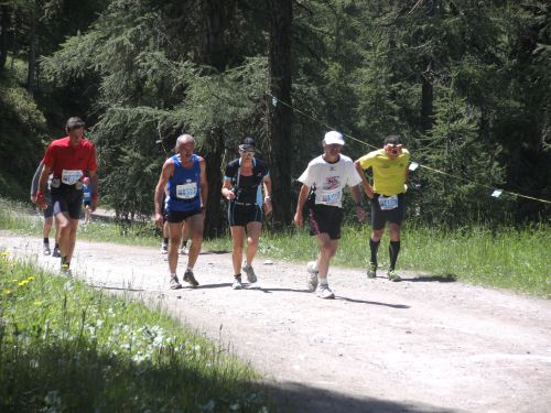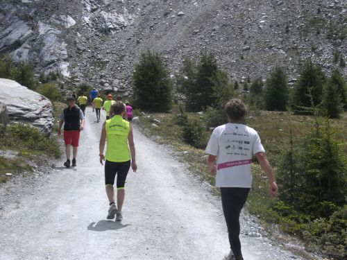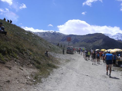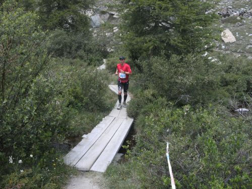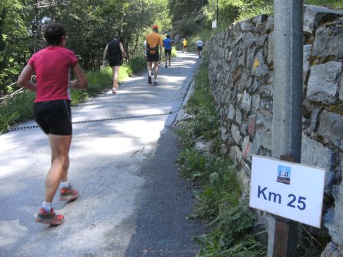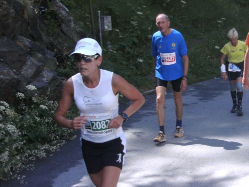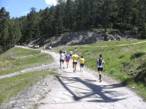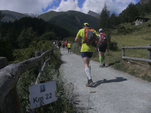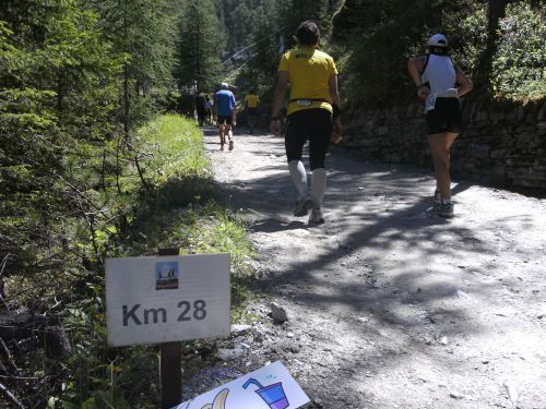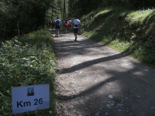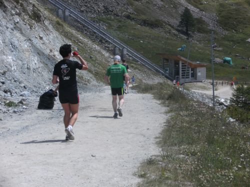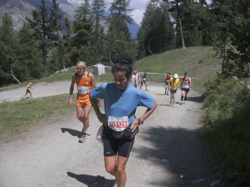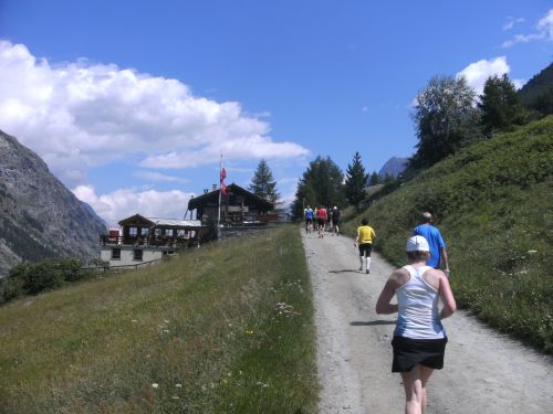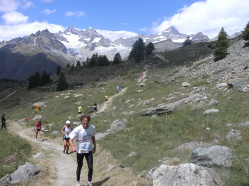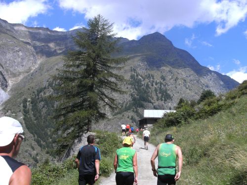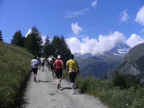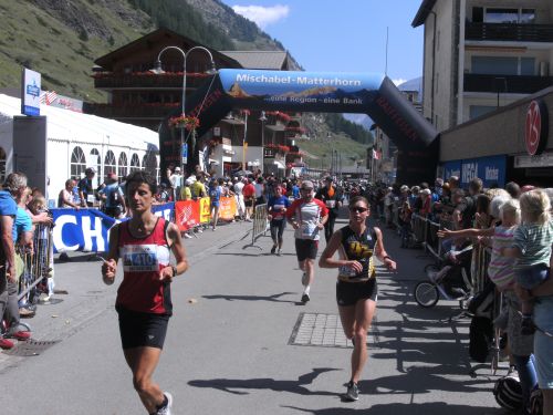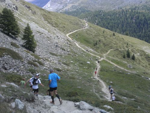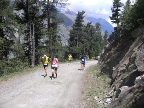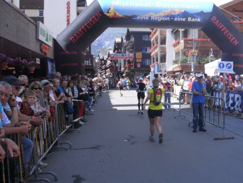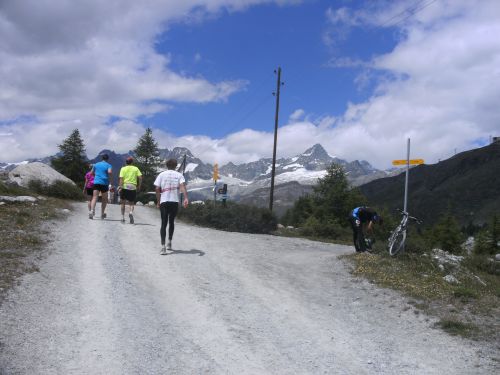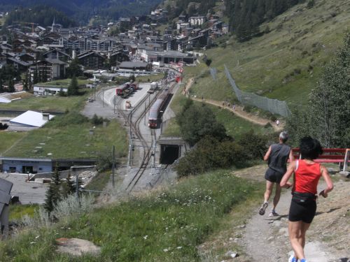 Das Läuferfeld ist mittlerweile bunt durcheinander gewürfelt. Viele später gestartete Marathonis haben sich unter die Ultras gemischt und zudem gab es in Zermatt am Bahnhof den Wechsel in der Marathonstaffel.
