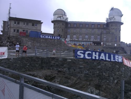 Ein Gruß an Wolfgang B. an dieser Stelle sei erlaubt. Der Infusionsständer konnte im Tal bleiben. Ich bin nahezu in euphorischer Stimmung auf den letzten Metern. Wind, Hagel, Kälte stören mich nicht. Auch nicht das etwas mondartig anmutende Ambiente auf den letzten Metern. Das Hotel auf dem Gornergrat kommt mir wie eine Raumstation vor und ich strebe ihr entgegen.