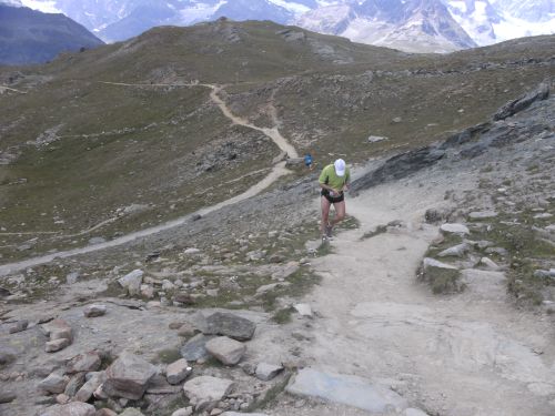 Es gilt einige steile felsige Passagen zu bewältigen. 45.595 KM erscheinen für einen Ultra recht wenig. Aber egal, nach Definition ist alles länger als Marathon ein Ultra. Zudem geben die zusätzlichen 514 Höhenmeter dem Zermatt-Ultra eine besondere Note. Der Zermatt-Ultra ist ein echter Ultra, Basta! Wer daran zweifelt soll doch einmal selbst den Schlussteil laufen, besser gehen.