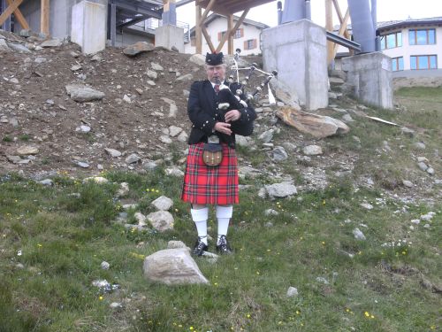 Was ist das? Ich höre mir vom Jungfrau Marathon vertraute Klänge. Unterhalb des Riffelbergs steht ein Dudelsackspieler und muntert uns Läufer auf. Hört sich gut an und spornt an. Ist es doch das Zeichen, dass es zum Ziel nicht mehr weit ist – zumindest für die Marathonis. Aber auch wir Ultras freuen uns, denn auch wir sind unserem Ziel nun recht nahe.