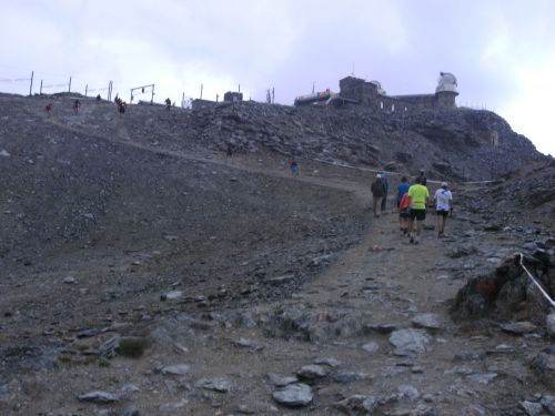 Einen letzten längeren steilen Abschnitt taufe ich spontan "Hillary-Step", frei nach einem anspruchsvollen Kletterstück im Schlussanstieg zum Gipfel des Mount Everest. Auch dieses Stück bewältige ich mit Hilfe der Lockrufe des Ziels am Gornergrat. Ich werde geradezu magisch angezogen und habe – anders als noch vor Wochen in Mannheim – keine Probleme das Ziel zu erreichen.