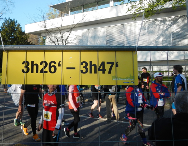 Das gleiche Wetterglück wünschte ich damals schon den Teilnehmern des Zürich Marathons in diesem Frühjahr, nicht ahnend, dass ich mir damit selbst etwas Gutes wünsche. Meine läuferischen Pläne für diesen April sahen ursprünglich anders, länger, aus. Die Anpassung an gewisse Realitäten führte dazu, dass der 19. April in der Agenda frei blieb und ich dem Chef einen Laufeinsatz anbieten konnte. Zürich war noch zu haben. Keine Ahnung weshalb. Könnte es sein, dass ein Zusammenhang mit dem Wechselkurs besteht? Die Schweiz war bei Läufern noch nie dafür berühmt, Marathons zu Schnäppchenpreisen anbieten zu können. Jetzt, da sich der Franken wieder gefährlich nah der Parität zum Euro nähert, hat sich die Situation noch verschärft. Also biete ich mich als Euro-Opferlamm an, von Zürich zu berichten, wo immerhin über 3000 Startende die volle Distanz unter die Füße nehmen. Mit den Teilnehmern des Cityruns (10km) und den 950 Mannschaften des Teamruns (Vier Teilnehmer teilen sich die Marathonstrecke auf in ~9,5/11,5/4/17km) sind an diesem frühen Sonntagmorgen fast 10000 Leute unterwegs zum Strandbad Mythenquai.