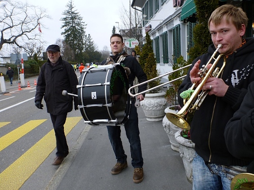 Jetzt schaffe ich es zum ersten Mal, die Zürigugge Lady Killers, eine Guggenmusik, mit der Kamera abzuschießen. An der Quaibrücke und an der Oper ist die Stimmung weiter am Brodeln. Ab Bahnhof Tiefenbrunnen und Bellerivestrasse beginnt der Hinweg zum Wendepunkt in Meilen. Der Zuschauerzuspruch nimmt jetzt tendenziell ab, ist jedoch bei den vielen Musikbands, bei den V-Stellen und in den Orten weiterhin da.