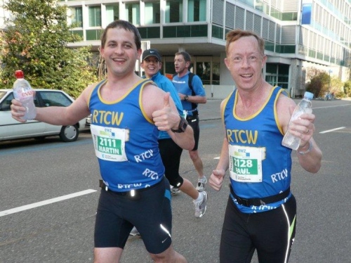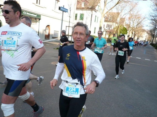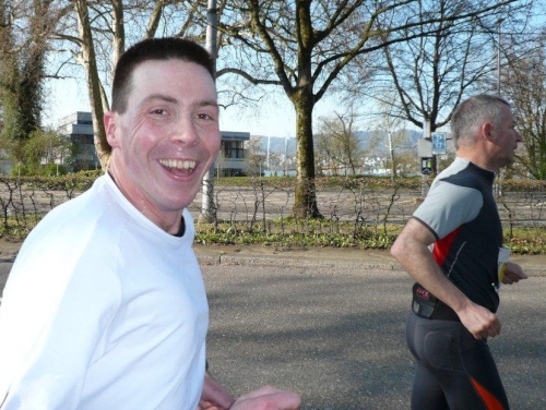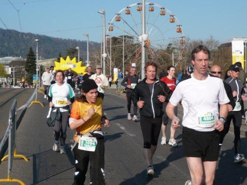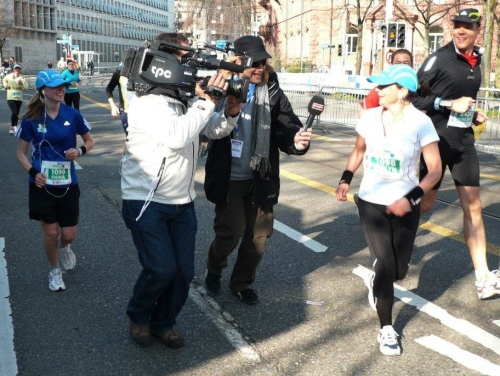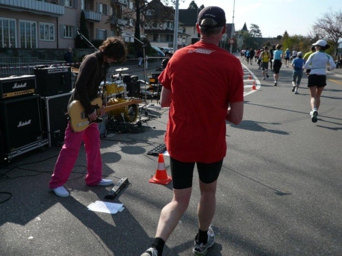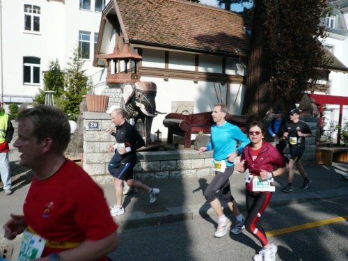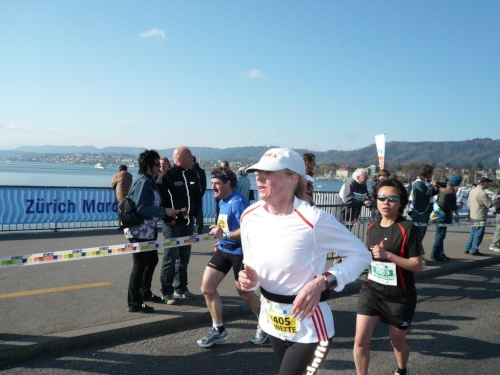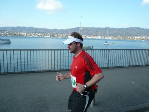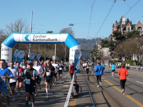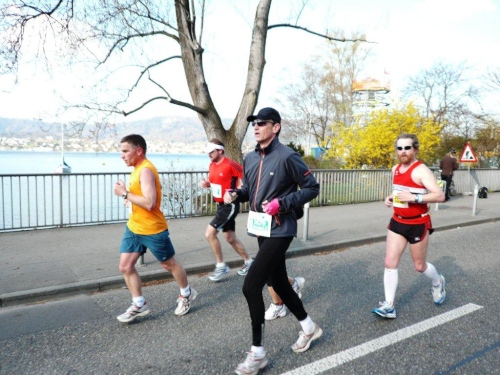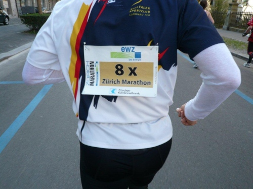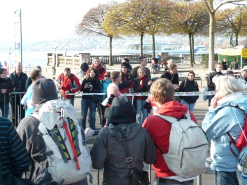 Ob so viel Geschichte die beiden Engländer interessieren würde, mit denen ich ins Gespräch komme, erfahre ich nicht. Paul und Martin laufen als Spendensammler für "Round Table Children’s Wish", eine Organisation, die Kindern mit lebensbedrohlichen Krankheiten Wünsche erfüllt. Sie sind ziemliche Marathon-Neulinge, was sie aber nicht daran hindert, innerhalb von zwei Wochen drei Marathons zu laufen. Auch wenn sie es mit Freude machen und Zürich eine gute Stadt finden, ist es für beide ein hartes Stück Arbeit, die £ 5000.- zu erlaufen.