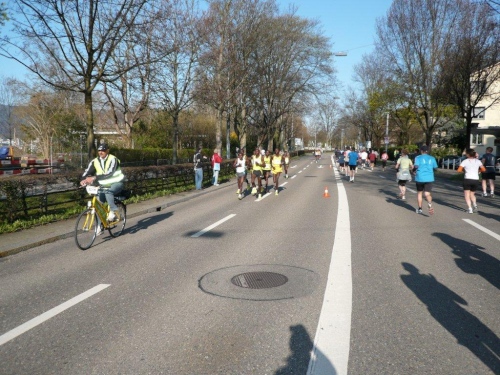 Wieder geht es am Chinagarten und am Zürichhorn vorbei, vorher nochmals an einer Wasserstelle, an welcher zusätzlich Bananen gereicht werden. Ich für meinen Teil hätte gerne jetzt schon eine isotonische Stärkung, ich muss mich aber noch drei weitere Kilometer gedulden. Dafür wird das Wasser in kleinen PET-Flaschen abgegeben, was ich wiederum sehr schätze. Ich trage nicht schwer daran und habe jederzeit Zugriff.