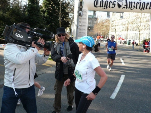 Wie es so ist, komme ich beim Fotografieren mit verschiedenen Teilnehmern ins Gespräch. Und auch heute geht es darum, wie gut das Laufen für Körper und Geist ist. Davon muss mich niemand überzeugen, genauso wenig wie den Bündner Andrea, der beim Zürich Marathon noch nie gefehlt hat und daneben auch zehnfacher Finisher des Comrades ist. Irene, zu welcher wir aufschließen, bestätigt diese Einschätzung mit einer weiteren, sehr persönlichen Dimension. Sie läuft gegen Krebs. Nicht als Spendensammlerin, wie das viele in verdienstvoller Weise auch tun, sondern gegen den Krebs in ihr.
