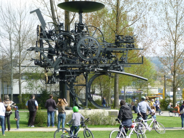 Einen Kontrapunkt im Parkgelände setzt ein höchst eigenwilliger, in das üppige Grün eingebetteter, bunter Baukörper mit scheinbar darüber schwebendem Faltdach. Das Heidi Weber-Haus gilt als letztes Meisterwerk des Stararchitekten Le Corbusier. Gleich daneben fallen eine kaminrote Mauer und darüber spitzende gewundene Dächer mit dunkelgelb glacierten Schindeln ins Auge. Hinter der Mauer verbirgt sich der Chinagarten, ein Geschenk der südchinesischen Partnerstadt Kunming. Mit seinen Kanälchen und Bambushainen, Pavillons und Halbmondbrücken setzt die Gartenanlage einen zusätzlichen exotischen Akzent.