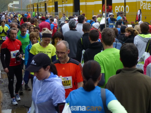Meine Startunterlagen inklusive Pasta und Messeerlebnis bekomme ich wie schon damals in der Saalsporthalle. Das Auto sollte man tunlichst am Quartier stehen lassen. Dank perfektionierter Parkraumbewirtschaftung sind Parkplätze überall in Zürich rar und vor allem teuer, interessanterweise mit Länge der Parkdauer exponentiell ansteigend. Mit S-Bahn oder Tram ist die Halle aber gut erreichbar. Gleiches gilt für das Start-/ Zielareal auf dem Mythenquai unweit des Zentrums am Westufer des Sees.