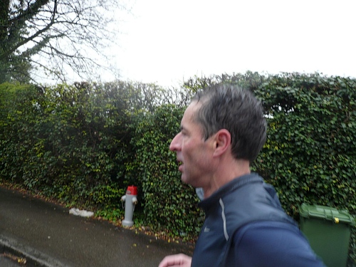 Es beginnt nun der Kurs zum Wendepunkt nach Meilen. Rund 12, 13 Kilometer auf der Hauptstraße nach Meilen. Ich sorge mich um die Kamera, die nicht mehr richtig schließt und öffnet. Man sieht es an den Bildern und den schwarzen Ecken. So ein Schiet-Wetter. Der Ausblick auf den Zürichsee und das gegenüberliegende Ufer, soweit man das noch erahnen kann, sagt nichts Gutes. Hoher Wellengang, keine Besserung in Sicht. Da war es beim Wintermarathon in Leipzig besser zu laufen.