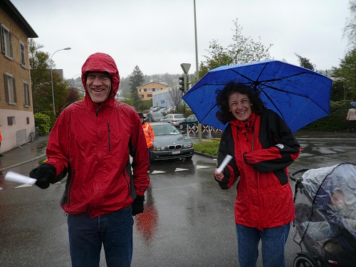 Kurz danach trennen sich auch CityRunners vom Gesamtfeld, denn sie werden in ihren Zielkanal eingewiesen. Am Ende des Mythenquais haben sich die Musiker der Lady Killers unter ein Zelt zurückgezogen, dem Regen sei Dank.