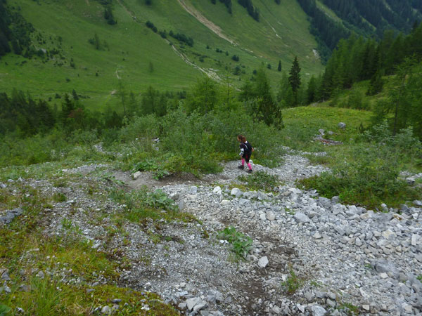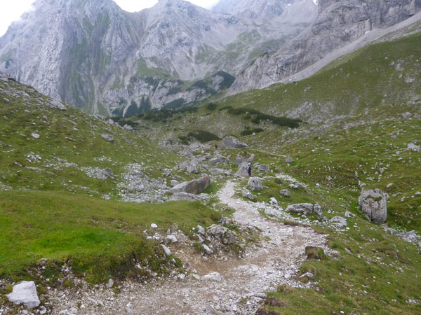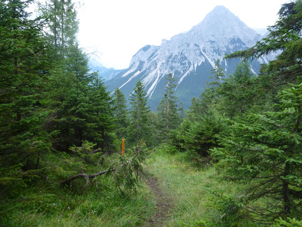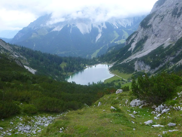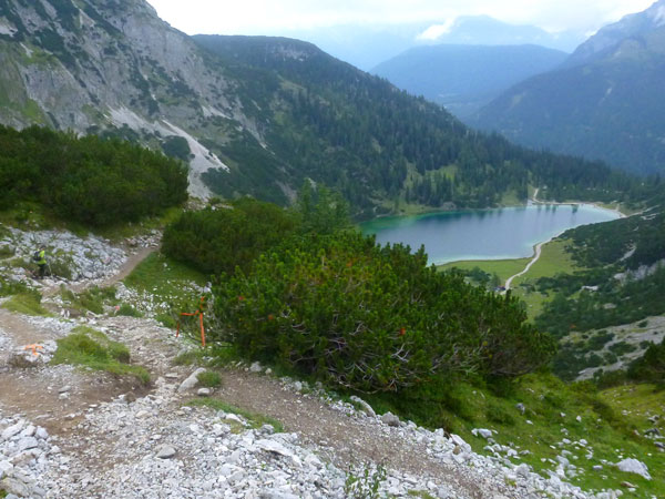 Bis zur 100 Meter tiefer liegenden Coburger Hütte kommt man ganz passabel voran, viele geröllige Stellen erschweren aber ein konstantes Laufen. Der Abstieg hinunter zum Seebensee (1.657m) ist wieder steil und deutlich anspruchsvoller.