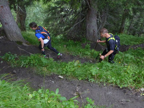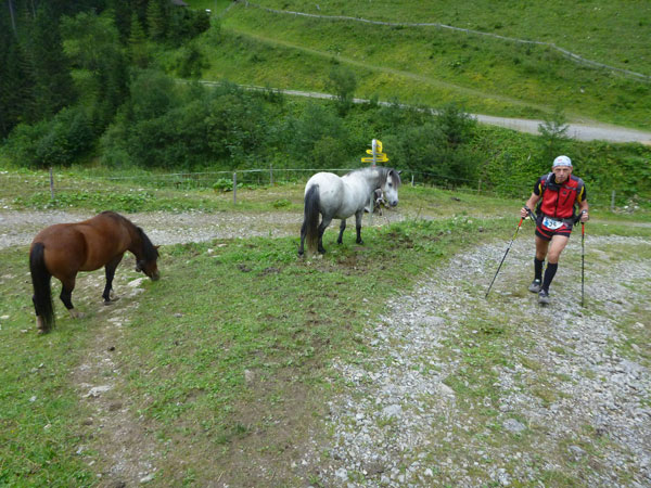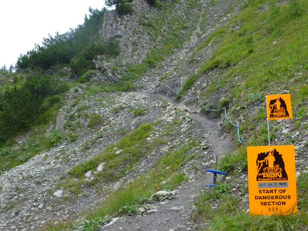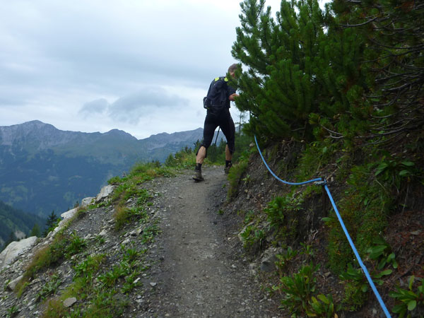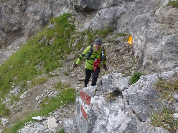 Ich sehe zwei Männer der Bergwacht über mir, das signalisiert mir das Ende dieses Aufstieges. Über 1000 Höhenmeter beinhaltete die 4 Kilometer lange Kletterpartie. Die Zeit verrinnt gnadenlos, mir bleiben für die nächsten 7 km bis zum Zeitlimit an der Pestkapelle nur mehr 1:20 Std.