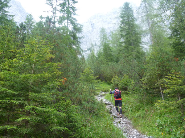 Ab Seebensee gibt es wieder längere Abschnitte auf gut zu laufenden Forststraßen und Wanderwegen. Seit Coburger Hütte herrscht auch reger Wanderverkehr. Mein Blick fällt vermehrt auf meine Uhr. Ich muss richtig auf das Tempo drücken, sonst bin ich raus.