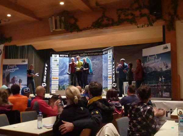 Ab 19 Uhr findet in Ehrwald im Zugspitzsaal die Pasta Party und die Siegerehrung statt. Immerhin haben von 125 Gestarteten 103 das Ziel erreicht. Das sind nur 20 % Ausfallquote, ich hätte mehr befürchtet.