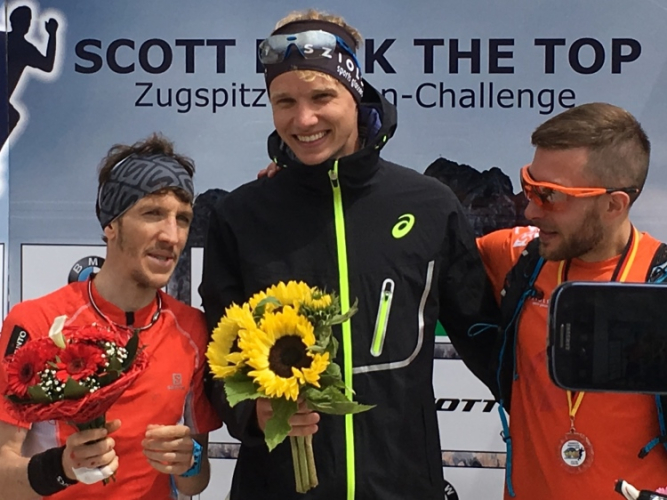 Pünktlich ließ uns der Starter auf die Strecke. Der erste Kilometer war neutralisiert und führte uns durch Ehrwald. Schnell setzten sich an der Spitze Lukas Nägele und Moritz auf der Heide in meiner Gefolgschaft ab. In direkter Schlagdistanz hatten wir schnell keinen Konkurrenten mehr. Auch als es nach knapp drei Kilometern in den ersten Aufstieg zum Grünen Ups ging, wiesen wir bereits einen stattlichen Vorsprung auf. Gute 800 Höhenmeter galt es hier zu absolvieren.