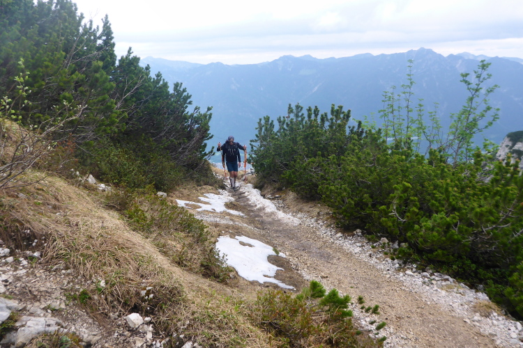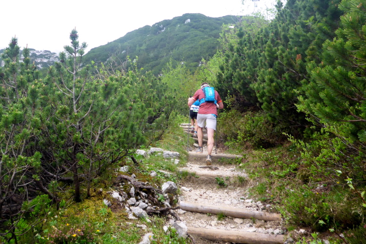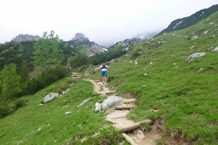 Mutig setze ich die ersten Schritte in den Steig. Zunächst geht das ganz gut. Es ist nicht so steinig und stei,l wie gedacht. Ich komme gut voran. Wenn ein Schneller von hinten anschnauft, mache ich Platz, um ihn nicht zu behindern.