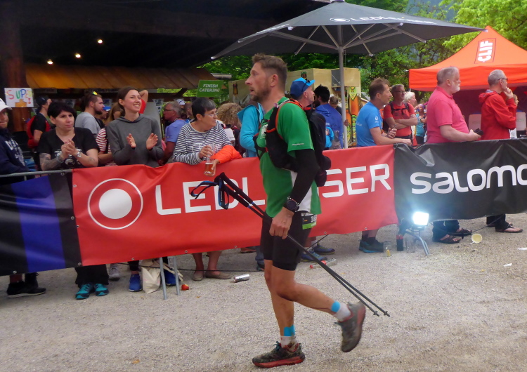 Laura ist schon lange im Ziel, Norbert beim Supertrail, wie viele andere auch, ausgestiegen. Die Zielverpflegung ist wieder vom Feinsten, hier schließt sich der Kreis. Stolz ziehe ich mein Finishershirt über und wir genießen noch eine Weile die phänomenale Stimmung im Zielbereich. In der Nacht gibt es dann tatsächlich noch die angekündigten Gewitter. Gut dass da schon der letzte Läufer im Ziel war.