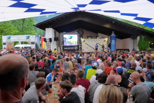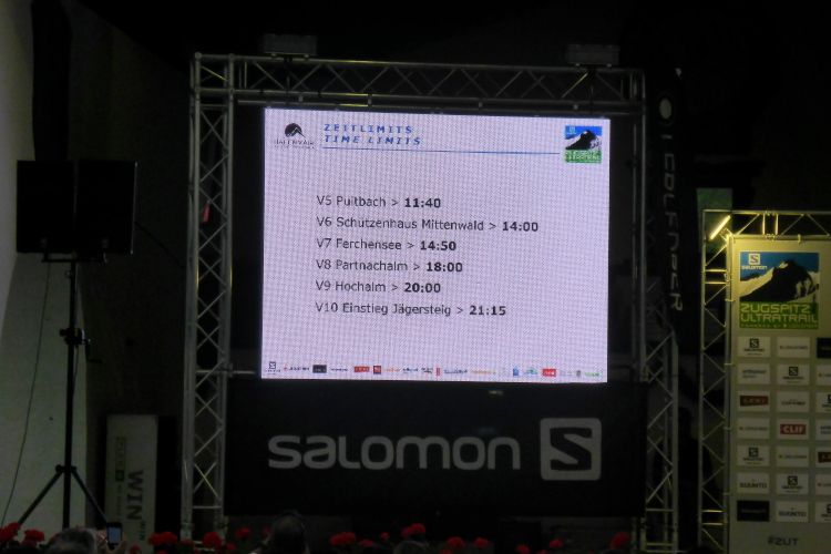 Briefing um 19Uhr30: der Musikpavillon platzt aus allen Nähten. Jeder will die neuesten Informationen hören: Es liegt reichlich Schnee auf der Supertrail-Strecke und um den Osterfelderkopf. Die letzte Gipfelrunde wird deshalb in umgekehrter Richtung gelaufen. Hoch im Schnee, runter auf der Straße. Ich verlasse mich auf den Veranstalter - das wird schon klappen.