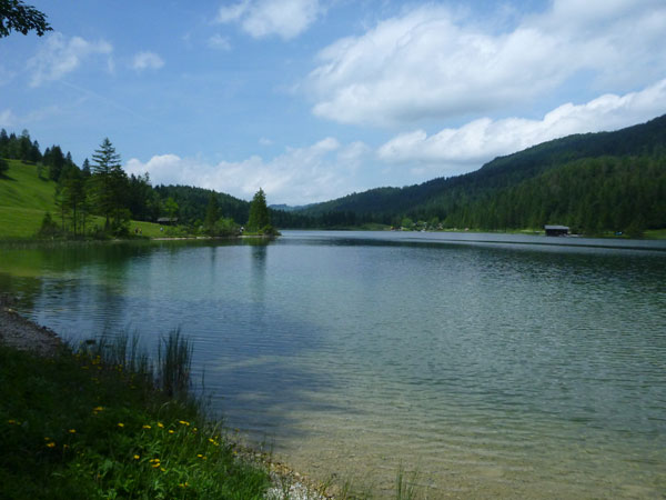 Sehr gefällig führt ein wunderbarer Trail in einem stetigen Auf und Ab durch den Wald unterhalb des Grünkopfs zum Ferchensee. Über uns verläuft der sogenannte Franzosensteig, hier geht die Geschichte der Befestigungsanlage Porta Claudia weiter. Während des Feldzuges Napoléons gegen Österreich im Jahr 1805 belagerten die französischen Truppen die Pässe Scharnitz und Leutasch. Den französischen Armeecorps mit 8.000 Mann standen damals 2.000 Tiroler gegenüber. Von ortskundigen Mittenwaldern geführt – Bayern stand damals auf der Seite von Napoléon – konnten die Franzosen über den seitlich am Grünkopf vorbeiführenden Steig, den an der Leutascher Schanz stationierten Österreichern unerwartet in den Rücken fallen. Als Folge konnten sie auch den Scharnitzpass erobern und so ins Inntal und nach Innsbruck vorrücken.