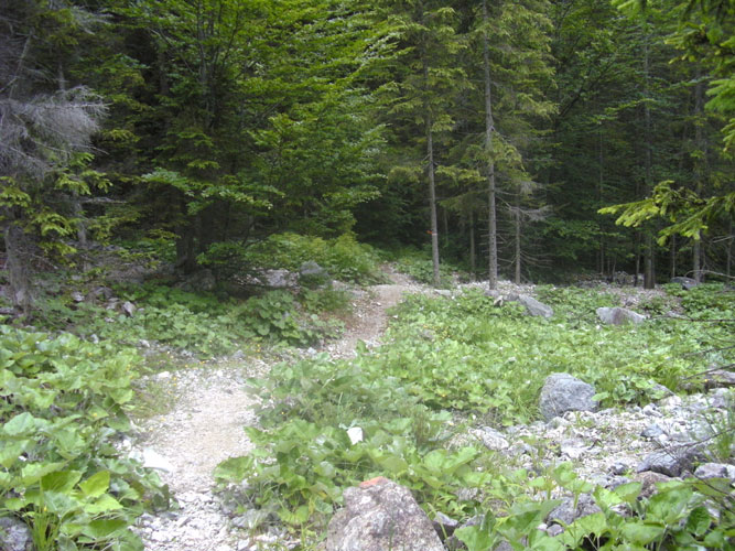 Was er damit gemeint hat, wird mir schon nach den ersten Metern klar. Steil und diffizil geht es zwischen scharfkantigen Felsen und Gestein nach unter. Das ist ja der Wahnsinn, eigentlich habe ich mich auf einen schönen Laufabschluss den Berg runter gefreut, aber weit gefehlt. Tempo kann man hier überhaupt nicht aufnehmen, wenn es einen da zerbröselt, muss man schon viel Glück haben, mit ein paar Schürfwunden davon zu kommen. Und es ändert sich auch nicht viel, je weiter ich runter komme. Mittlerweile ist es Kuhnacht und ich habe meine Stirnlampe aufgezogen. Zur Steilheit kommen weiter unten noch rutschige Abschnitte hinzu, mehrmals kann ich mich nur noch in letzter Not mit den Stöcken retten. Die sind hier so eine Art Lebensversicherung für mich und ich hab sie schon richtig lieb gewonnen. Warum werden eigentlich überwiegend nur die Höhenmeter aufwärts erwähnt? Beim Supertrail müssen sogar noch fast 400 Hm mehr negativ bewältigt werden, sodass wir auf ca. 3500 Hm abwärts kommen und die sind teilweise wirklich der Hammer.
