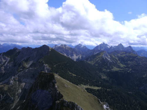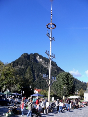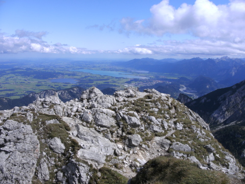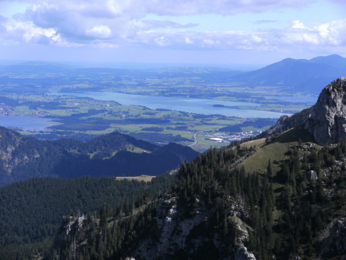 Ich entschließe mich zur Besteigung des Aggensteins. Hierzu muss ich am Samstag über 1.000 Höhenmeter aufsteigen. Die Wanderung ist ein Genuss und zeigt das Allgäu von seiner schönsten Seite. Vom Gipfel hat man einen tollen Blick in die Alpen hinein und auf das Alpenvorland. Man sieht u. a. Füssen mit Forggensee und auch das weltberühmte Märchenschloss Neuschwanstein, erbaut vom Kini (=König Ludwig für alle Nichtbayuwaren).