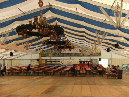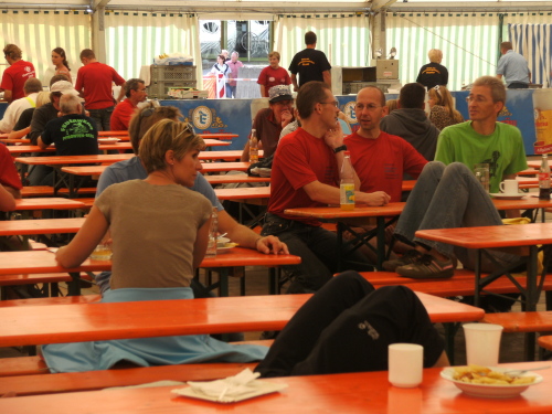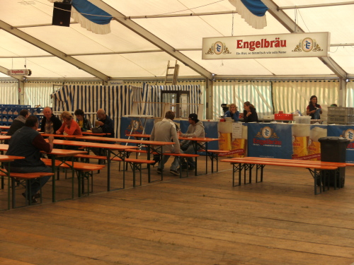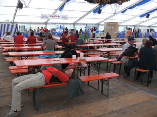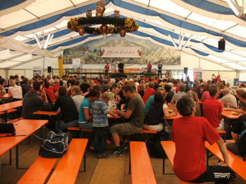 Nach einer Dusche Im Quartier gehe ich nochmals ins Festzelt und schaue mir die Siegerehrung an. Das Zelt ist nun gut besucht. Die drei Erstplatzierten aller Kategorien werden mit Tüten und Körben voller Preise für ihre Mühen belohnt.
