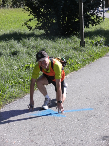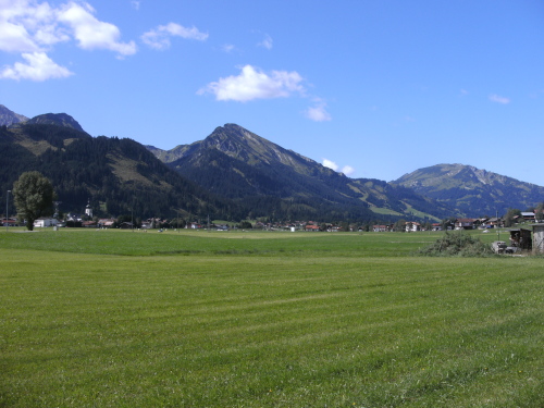 Ich reise am Freitag entspannt mit der Bahn an. Bei der gemütlichen Fahrt mit der Regionalbahn von Kempten bis Pfronten Ried bekomme ich schon einen Vorgeschmack auf die herrliche Landschaft des Allgäus. Meine Pension liegt günstig zum Bahnhof und Startplatz des Marathons. Ich breche sofort zu einer ersten kleinen Wanderung auf. Das Wetter hält alles bereit, was man als Wanderer braucht und auch nicht braucht: Regen und Sonnenschein. Macht nix, ich hab einen Schirm dabei. Ich genieße die Wanderung über das Himmelreich, ja, so heißt es hier wirklich. Ab der Fallmühle wandere ich auf der Original-Marathonstrecke durchs Achtal zurück nach Pfronten.
