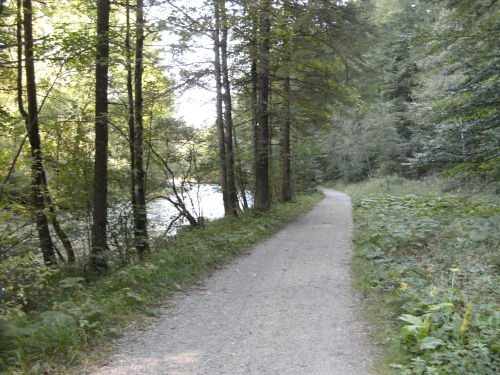 Die Landschaft ist herrlich, der Blick in die umgebende Bergwelt ist verlockend. Ich treffe viele Wanderer und Mountainbiker auf ihren Touren. Es ist wunderschön entlang der Vils zu laufen und die Ausblicke zu genießen. Ich bin froh, nicht den doppelten Halben zu laufen und freue mich auf die weitere Strecke.