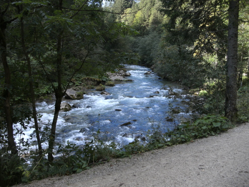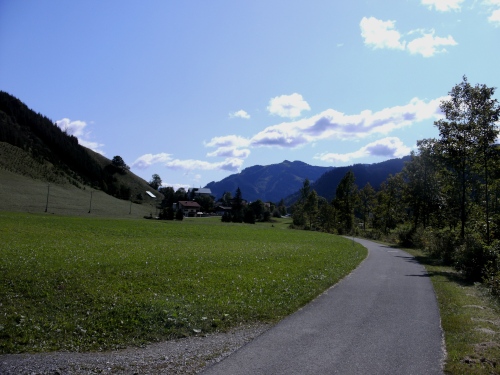 Unterwegs treffe ich immer wieder Radler, einige überhole ich stets an Steigungen und muss sie bei Gefälle dann wieder passieren lassen. Wir haben unseren Spaß dabei. Der vergeht mir jedoch kurz vor der Fallmühle. Hier ist eine Radlerin auf Schotter ausgerutscht und böse gestürzt. Ein Zahn ist weg und die Ausfahrt damit beendet. Somit gibt es leider keine weiteren Begegnungen mehr auf dem Weg nach Pfronten. Gute Besserung!