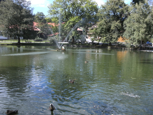 Im Kurpark hatte ich kurz nach meinem Start am Morgen ein Wassertretbecken gesehen. In dieses gehe ich nun und erfreue mich am Kälteschmerz. Soll die Regeneration fördern. Tut jedenfalls gut.