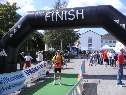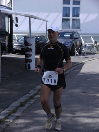 Nach einem Blick ins Zelt treffe ich draußen einen alten Bekannten. Wolfgang Pütz läuft gerade die letzten Meter zum Ziel und ich mache rasch ein Foto von ihm. Man sieht sich immer zweimal.