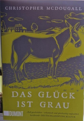 In „Das Glück ist grau“ berichtet McDougall von seinem spannenden Weg, den er mit seiner Familie und einigen Freunden geht, um aus dem eingesperrten und kranken Esel Sherman einen leistungsstarken und fitten Esel für das legendäre Burro Rennen in Colorado zu machen. Auf anschauliche und unterhaltsame Weise erzählt der Autor beinahe in belletristischer Romanform von diesem besonderen, eben auch amerikanischen Lebensabschnitt.