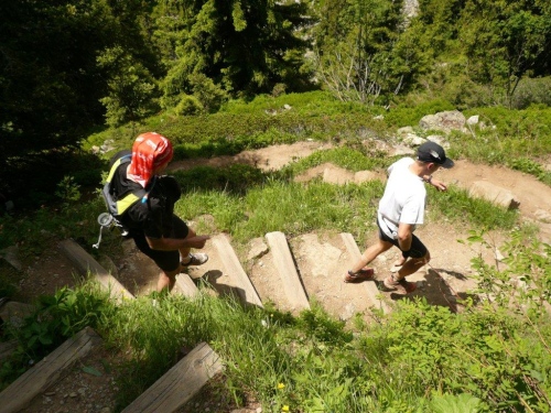 | Start ist in Chamonix (1035 m), das Ziel in Planpraz (2050 m). Insgesamt beträgt der Anstieg 2240 m, 1190 m geht es abwärts |