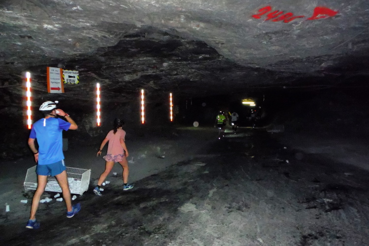 Unter-Tage-Strecke, Helm und Lampe sind Pflicht