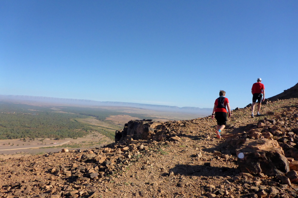 | 42 km durch die Wüste mit allem Drum und Dran: Trockentäler, Dünen, Oasen, steinige Flächen, Anstieg zum Zagora-Berg und steiler Abstieg. 600 HM sind auf dem Rundkurs zu bewältigen |