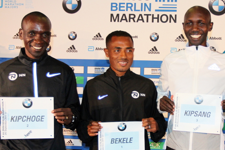 Mit gleich drei Athleten, die Bestzeiten von unter 2:03:30 Stunden aufweisen, hat der BERLIN-MARATHON eine außergewöhnliche Breite in der Spitze. Kenenisa Bekele (Äthiopien) triumphierte im vergangenen Jahr am Brandenburger Tor mit 2:03:03 Stunden, der zweitschnellsten Zeit aller Zeiten, der Kenianer Eliud Kipchoge rannte 2016 in London 2:03:05, und sein Landsmann Wilson Kipsang war vor einem Jahr in Berlin Zweiter mit 2:03:13. Das Trio hat eines gemeinsam: alle drei gewannen schon in Berlin.