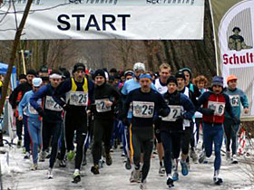 Vor dem Start gab es aber erst einmal viel zu tun. Teile der Strecke waren schneebedeckt und eisglatt. Mit einem Schneepflug wurde die fünf Kilometer lange Rundstrecke abgefahren, um das gröbste weg zu bekommen.