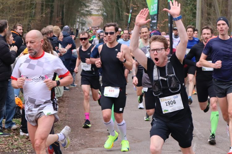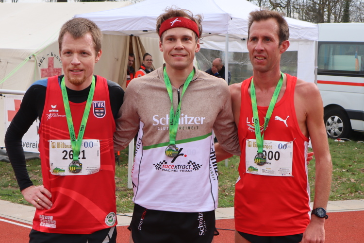 Er kam, sah und siegte. So könnte man den Siegeslauf von Jonas Hoffmann von der SG Wenden betiteln. Vom Start weg schlug der Profi-Triathlet ein Tempo an, das keiner mitgehen konnte. Schon nach 300 Meter war er allein an der Spitze und lief ein einsames Rennen gegen die Uhr. Lagen die Durchgangszeiten noch auf Rekordniveau, fehlten ihm am Ende nur 40 Sekunden zum Streckenrekord. Mit 1:05:48 h trägt er sich somit in die Siegerliste ein und war damit mehr als zwei Minuten schneller, als der aktuelle Rekordinhaber Simon Stützel von der LG Region Karlsruhe. Den dritten Platz auf dem Podium sicherte sich mit 1:08:16 h Jens Ziganke (TV Konstanz).