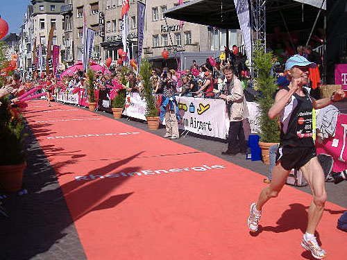 Die Schlusspassage führt über Auerberg und Graurheindorf nochmals an der Beethovenhalle vorbei Richtung Altstadt, wo es unter dem Beifall zahlreicher Zuschauer zum Ziel auf dem Marktplatz vor dem historischen Rathaus geht. Dieses Jahr hat man sich in Bonn für den Ziel-bereich etwas Besonderes einfallen lassen und die letzten 50 Meter für die Läufer mit rotem Teppich ausgelegt. Ein wahrlich stimmungsvoller Zieleinlauf!