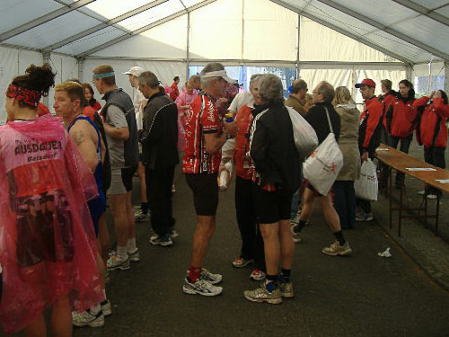 Die Startaufstellung erfolgte nach Bestzeiten. Brems- und Zugläufer boten Hilfe für Orientierungssuchende. Die farbig gekennzeichneten Startblöcke wurden getrennt gestartet. Das ganze geht in Bonn ohne Hektik über die Bühne.