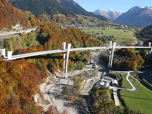 Die Sunnibergbrücke, die im Dezember 2005 im Beisein von Bundesrat Moritz Leuenberger und Prinz Charles eröffnet wurde, ist Teil der Umfahrung Klosters. Sie ist 526 Meter lang und überquert das Tal auf einer Höhe von 60 Metern. Die im Freivorbau erstellte fünffeldrige Schrägseilbrücke ruht auf vier Pylonen und gilt für Ingenieur- und Architektur-Touristen aus aller Welt als absolutes Highlight. Ein japanischer Ingenieurverein hat über das eleganteste Schweizer Alpenviadukt sogar einen Film drehen lassen.