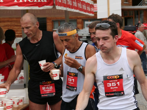Sowohl an der Keschhütte als auch am Scalettapaß wird eine medizinische (Schnell)Kontrolle durchgeführt. Lächelnd schaut dir der Doc in die Augen, stellt dir eine Frage und wenn du die falsche Antwort gibst, bist du raus. Nein, so ist es nicht. Aber wenn der Rennarzt Bedenken hat, wird eine Ruhepause verordnet oder der Läufer aus dem Rennen genommen.