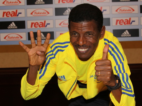 Haile Gebrselassie gewinnt den Dubai Marathon, verpasst aber den Weltrekord deutlich.