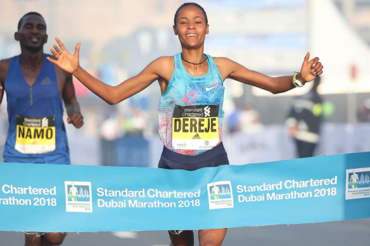 Zwei Streckenrekorde und einmalige Resultate gab es beim Standard Chartered Dubai-Marathon, den die Äthiopier Mosinet Geremew und Roza Dereje mit Zeiten von 2:04:00 Stunden beziehungsweise 2:19:17 gewannen. Bei den Männern liefen gleich sieben Äthiopier absolute Weltklassezeiten von unter 2:05 Stunden. Dies ist ebenso einmalig in der Geschichte des Marathonlaufes wie die Ergebnisse der ersten vier Frauen. Zum ersten Mal erreichten gleich vier Läuferinnen in einem Rennen Zeiten von unter 2:20 Stunden.