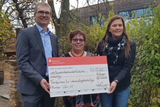Die Gesamtsumme von 4.125 Euro ging nun an den Förderkreis für intensivpflegebedürftige Kinder Ulm e.V. Ralf Sturm, Leiter Personalwesen ebm-papst Gruppe, übergab den Spendenscheck am 19.11.2019 in Ulm an die 1. Vorsitzende des Förderkreises Mathilde Maier. Um die Bevölkerung auf die Problematik von früh-oder krankgeborenen Kindern und deren Familien aufmerksam zu machen, wurde 1988 der Förderkreis für intensivpflegebedürftige Kinder Ulm e.V. gegründet.