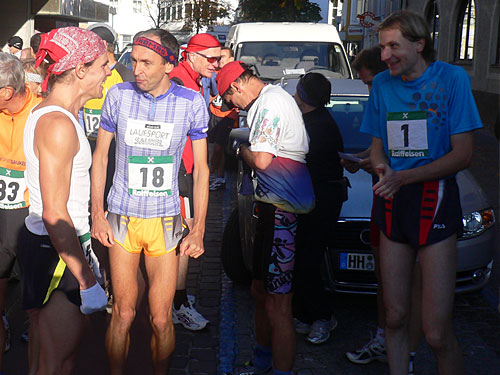 Trotz des relativ kleinen Teilnehmerfeldes (etwas über 200 Läuferinnen und Läufer hatten sich angemeldet), war viel Prominenz versammelt: der Südtiroler Gerd Frick (3-maliger Gewinner des Montafon-Arlberg-Marathon), Thomas Miksch, Carmen Hildebrand und völlig überraschend Helmut Schiessl, amtierender Deutscher Berglaufmeister und Weltmeister über die Langdistanz. „Das bin ich meinem Freund Jürgen Wieser schuldig. Mit ihm habe ich mir manches harte Rennen geliefert“, begründete er seine Nachmeldung für die 25 Kilometer-Strecke.