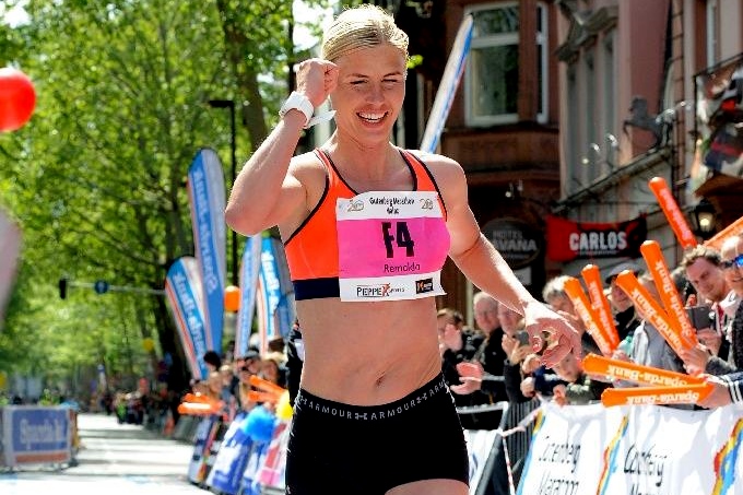 Sie kam, lachte und siegte: Remalda Kergytè-Dauskurdiene schaut sich die Kontrahentinnen lang an – und zieht unwiderstehlich davon: Sieg in 2.41:42 h