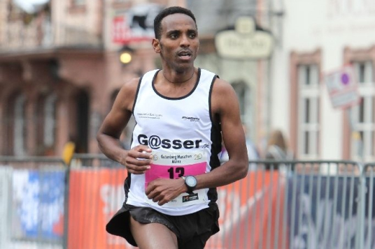 Welch ein Auftritt, welche Vorgeschichte. Im letzten Jahr avanciert Selema Testamariam zum tragischen Helden - damals lief er bei Kilometer 20 dem hochfavorisierten Roman Prodius (Moldawien) im Halbmarathon davon. Der damals am Lauftag erst nachgemeldete Testamariam (TV Alzey Laufteam) hatte Prodius dort nämlich in einem angezogenen Endspurt bereits klar distanziert. Problem: Testamariam verwechselte eine Zeitmessmatte 200 m vor dem Zieleinlauf mit dem realen Ziel, lief jubelnd zur Seite – und registrierte seinen tragischen Irrtum erst weit später. So avancierte der junge Läufer zum „tragischen Helden“ – und wurde deshalb natürlich vom Team gezielt nochmals eingeladen.
