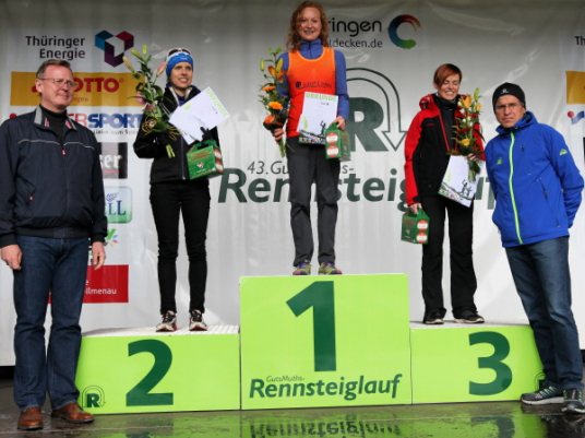 Erneut waren es die Thüringer, die den sportlichen Ausgang des Rennens geprägt haben. Auf dem langen Kanten siegte der Drittplatzierte des Vorjahres, Wolf Jurkschat vom gastgebenden GutsMuths-Rennsteiglaufverein. Er konnte seinen Heimvorteil nutzen, teilte sich den Lauf optimal ein und wurde im Ziel von den Tausenden Zuschauern frenetisch gefeiert – immerhin war er seit 43 Jahren der erste Rennsteiglaufsieger aus Schmiedefeld! Das wird für die Schmiedefelder umso schöner sein, weil der Zielort selbst zugleich sein 40stes Jubiläum zelebrierte. Nicole Kruhme, ebenfalls von GutsMuths-Rennsteiglaufverein, siegte überlegen auf der Halbmarathondistanz und beherrschte die Konkurrenz deutlich. Dabei war sie noch einmal gut zwei Minuten schneller, als bei ihrem Premierensieg 2013. Auch Kristin Hempel, die bereits den Marathon 2012 gewann, setzte sich ziemlich souverän auf der Supermarathondistanz durch. Für sie war es der erste Ausflug auf die Königsstrecke.