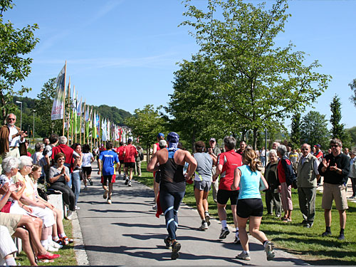 Auf der Strecke und vor allem auf dem Start- und Zielgelände sorgten viele Zuschauer für eine fabelhafte Kulisse und echte Marathon-Atmosphäre. Die reizvolle Strecke fand durchweg guten Anklang, bemängelt wurde von einigen Aktiven jedoch eine unzureichende Verpflegung, jedenfalls für den hinteren Teil des Teilnehmerfeldes. Einstimmig trotzdem das Resüme der Marathonis: "Schade, wenn es bei der einmaligen Auflage bliebe."